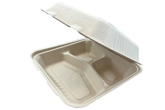 9" x 9" Natural Color NatureNow 3-Comps. Molded Fiber Hinged Lid Container[PFAS-Free]